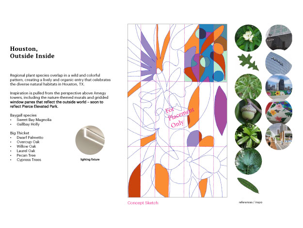 For Amegy Bank’s Houston headquarters, I created a series of site-specific feature graphics that celebrate the city’s unique blend of nature and innovation.